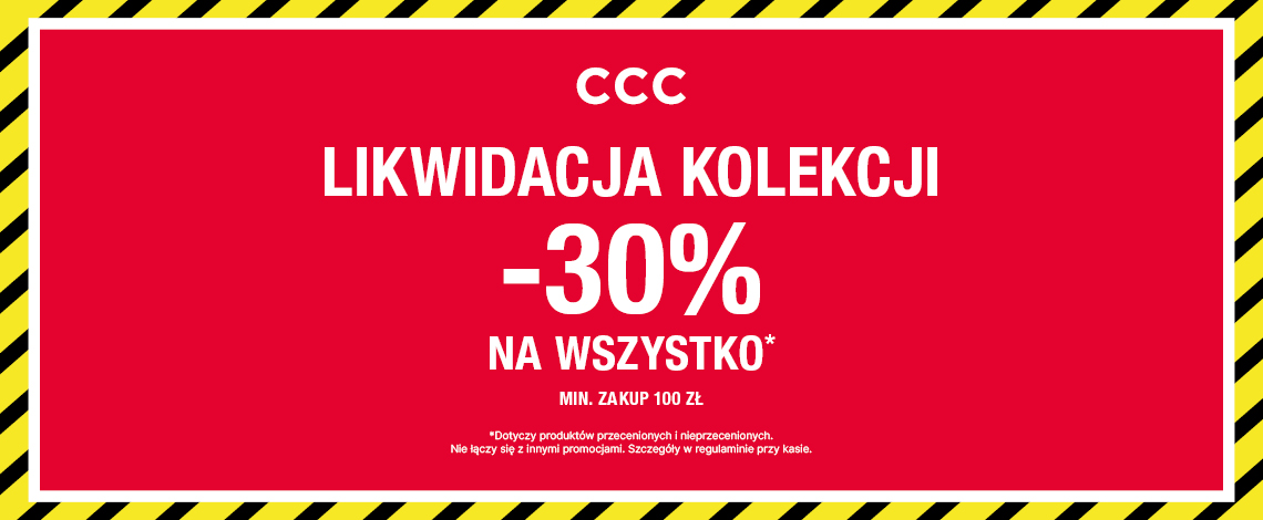 Startuje likwidacja kolekcji! Wszystko 30% taniej! Buty, torebki, plecaki i dodatki dla całej rodziny w jeszcze niższych cenach! Zrób zakupy za minimum 100 zł i zyskaj 30% zniżki! To doskonały moment, by znaleźć coś dla siebie oraz bliskich i zapłacić mniej! Skorzystaj, póki wybór jest największy!
